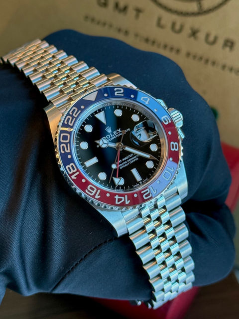 The 2022 Rolex GMT-Master II "Pepsi" (Reference 126710BLRO) is a stunning blend of style, functionality, and precision. Powered by the Rolex Caliber 3285 automatic movement, it offers an impressive 70-hour power reserve. Its iconic red and blue "Pepsi" bezel is paired with a durable stainless steel case, making it a standout in any collection. The watch’s dual time zone functionality, robust design, and COSC-certified accuracy ensure it’s as reliable as it is beautiful. A true icon for travelers and watch enthusiasts alike.